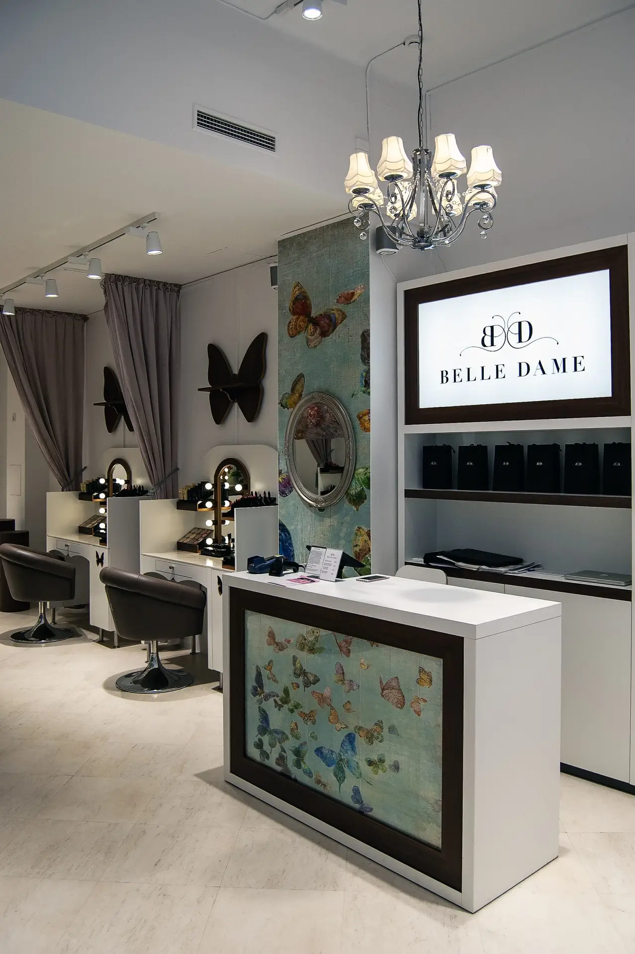 Vi designade hela inredningen och tog fram förpackningarna till Belle Dames egna sminkprodukter – exklusiva, eleganta och helt i linje med varumärkets själ. Även butikens flaggskylt och markis formgavs för att förstärka den inbjudande atmosfären redan från gatan.
