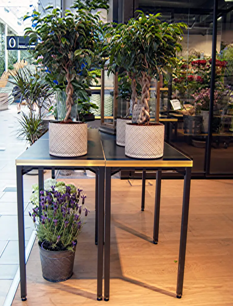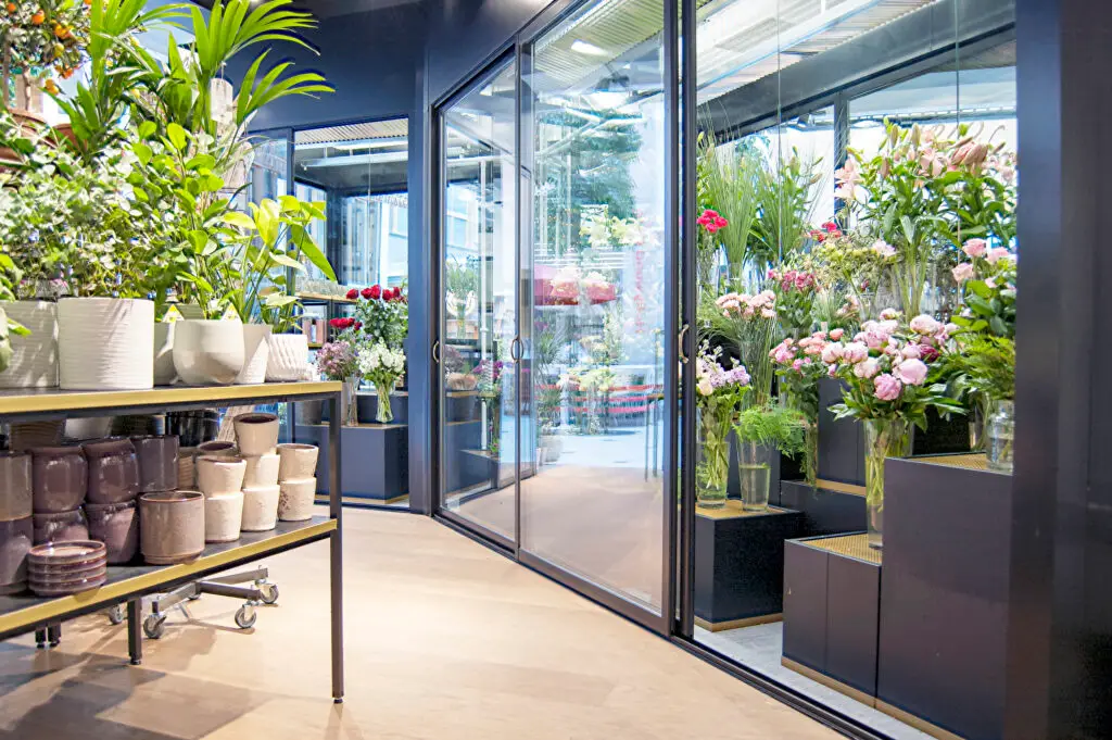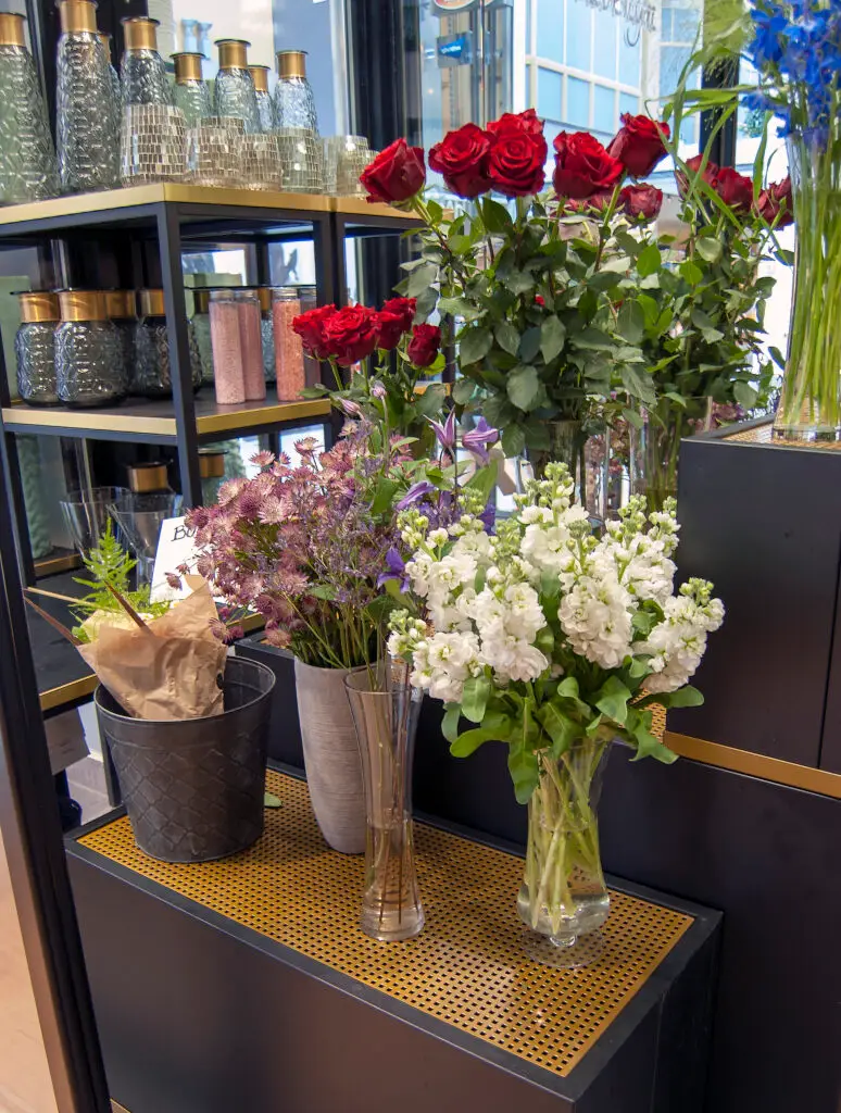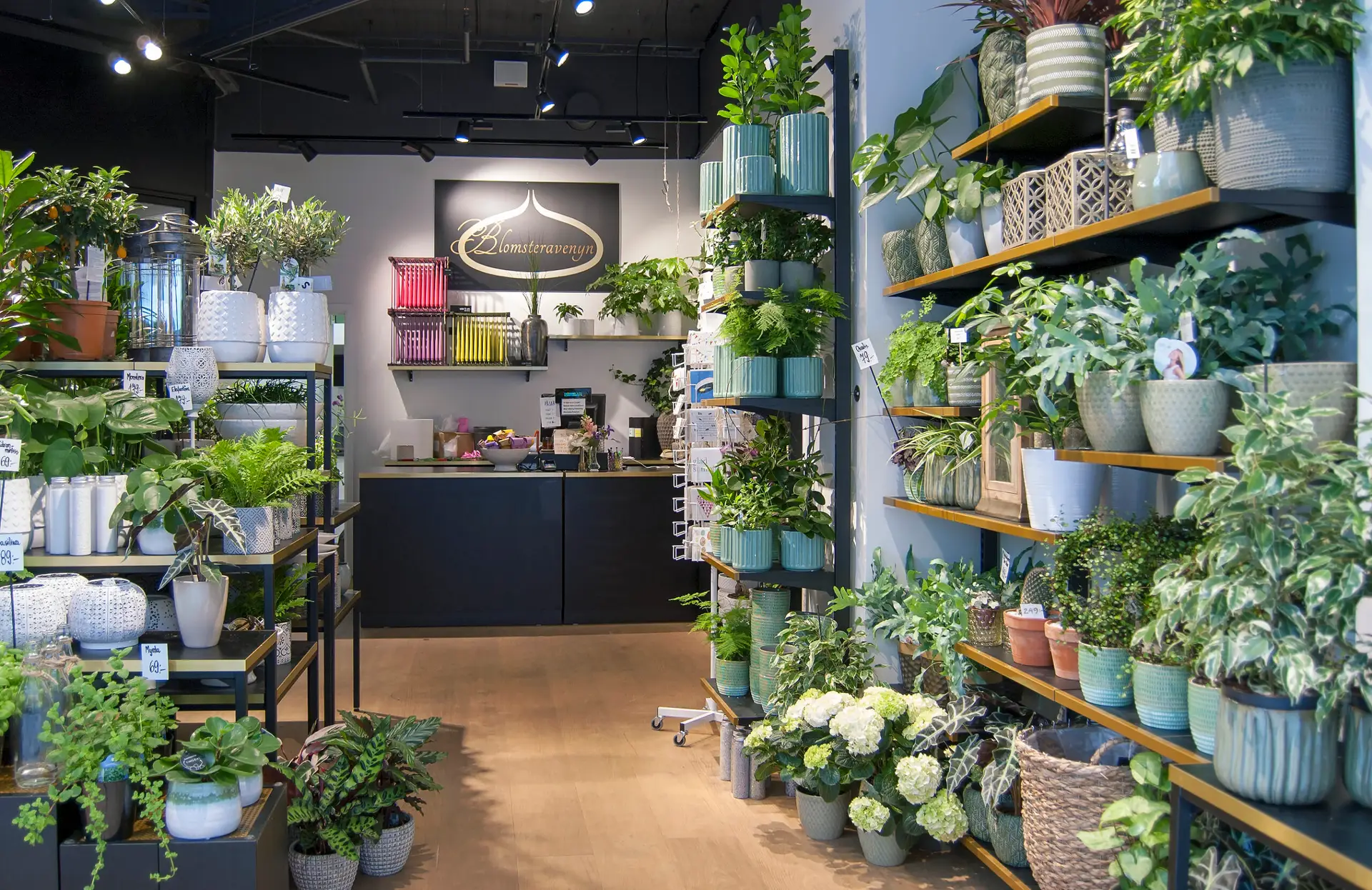 Vi fick uppdraget att göra ett nytt inredningskoncept till ett flertal blomsterbutiker. Efter våra förstudier bestämde vi oss för att de skulle vara luftiga och andas lite lyx.