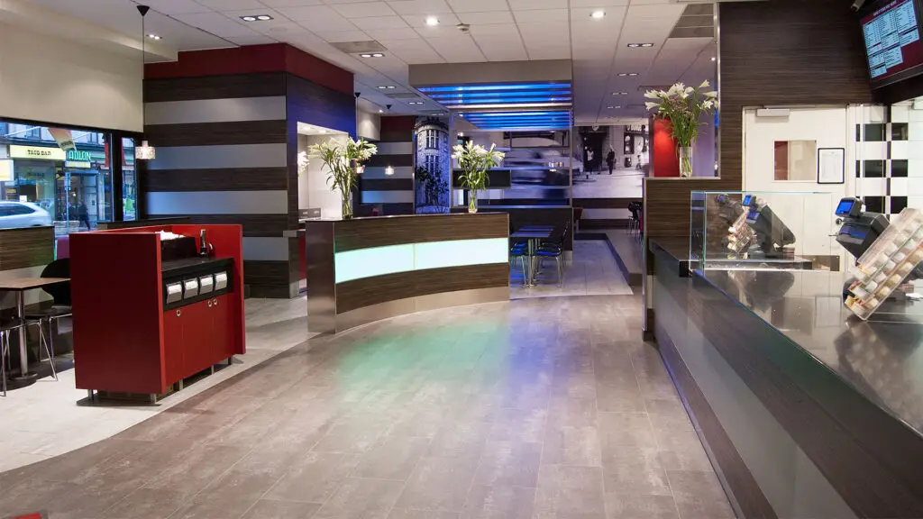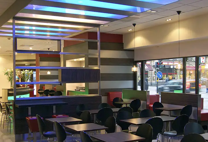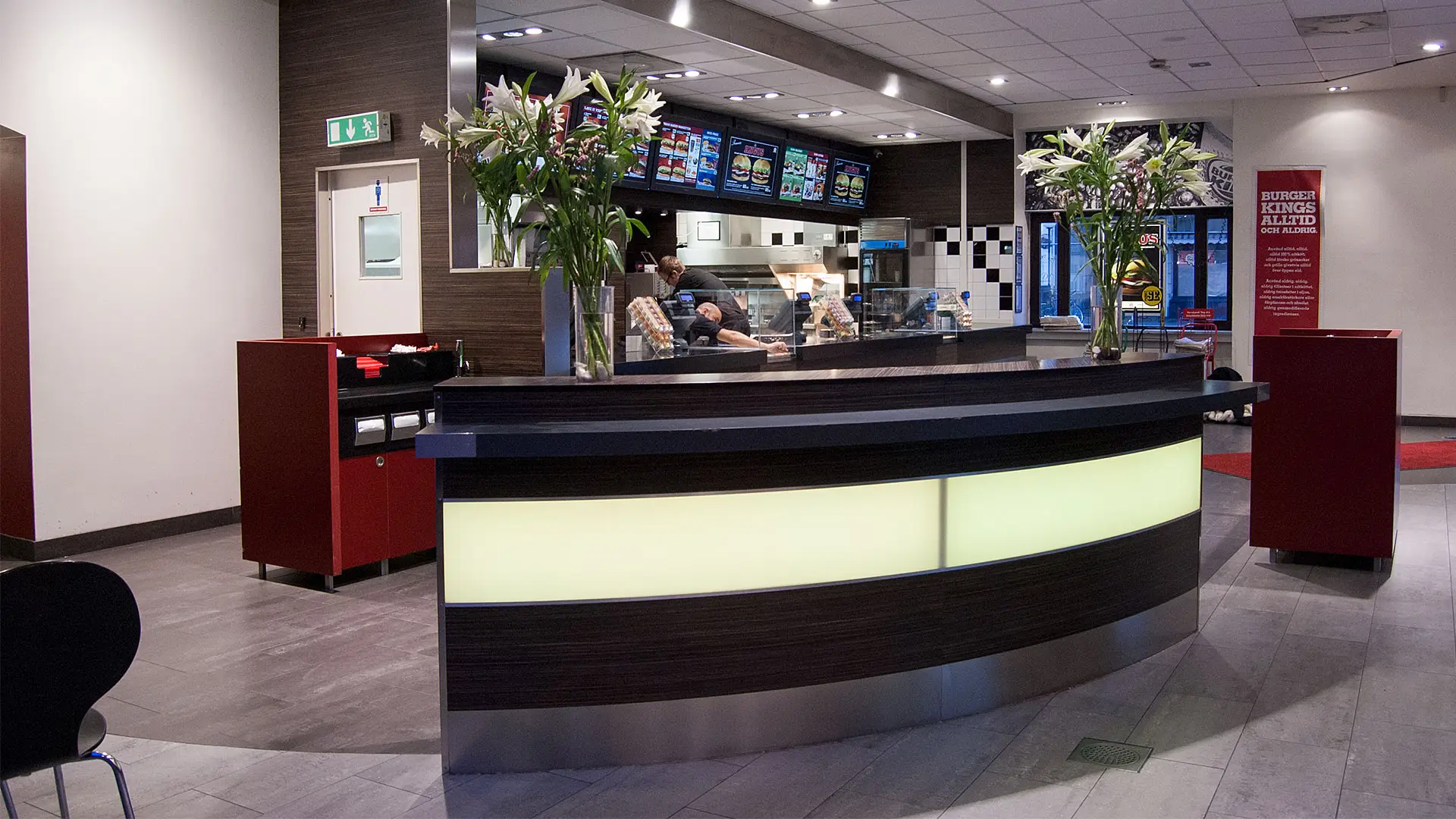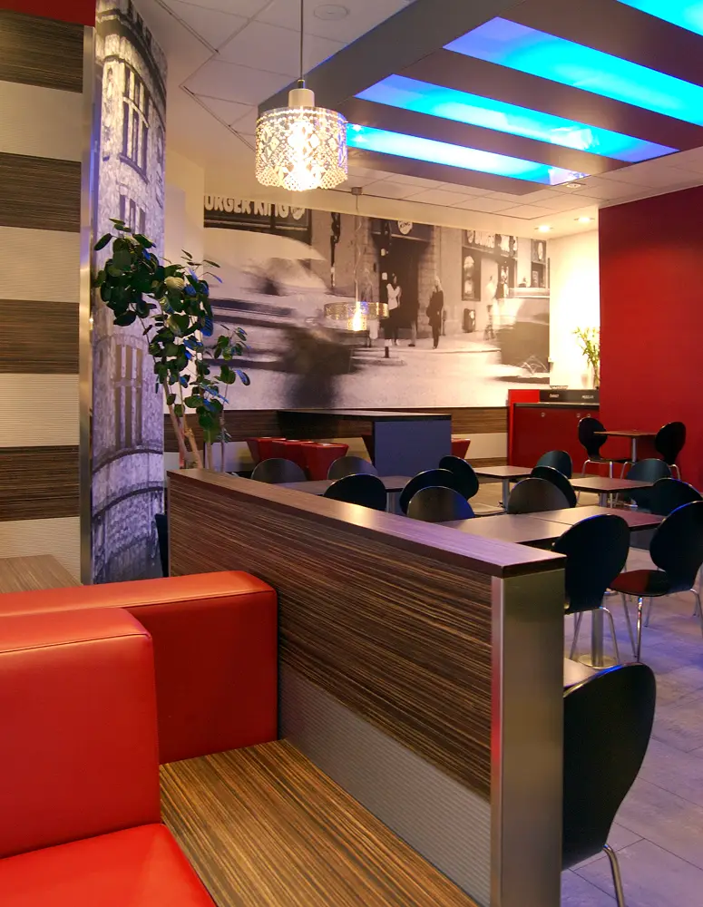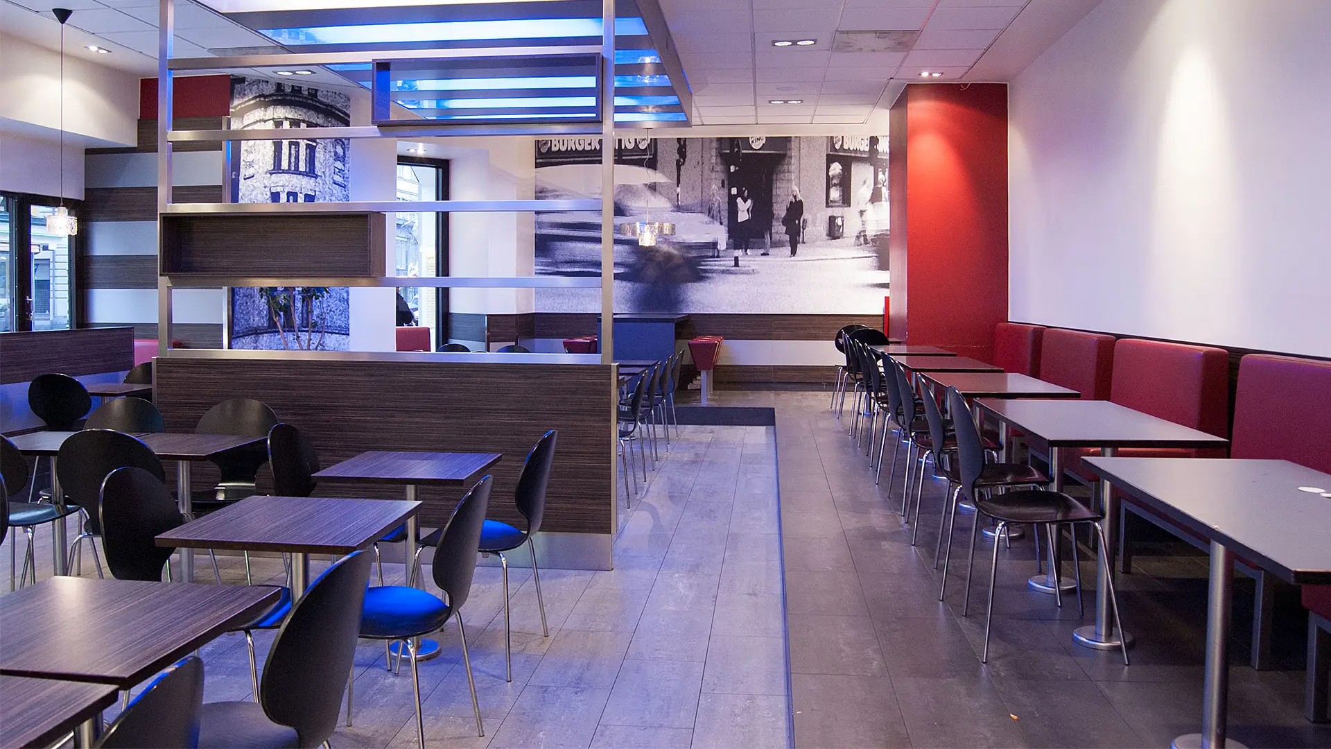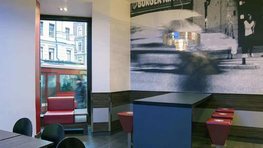 I samarbete med en inredningsleverantör fick vi uppdraget att göra en vidareutveckling av konceptet till Burger King. Nya materialval och ny inredning togs fram som är bättre anpassade för restaurang verksamhet. En helt ny sopstation ritades med miljö och hygien anpassade material. Totalrenovering av hela restaurangen gjordes som pilotprojekt på Vasagatan i Stockholm. Det blev väldigt lyckat så konceptet rullades sedan vidare rikstäckande.