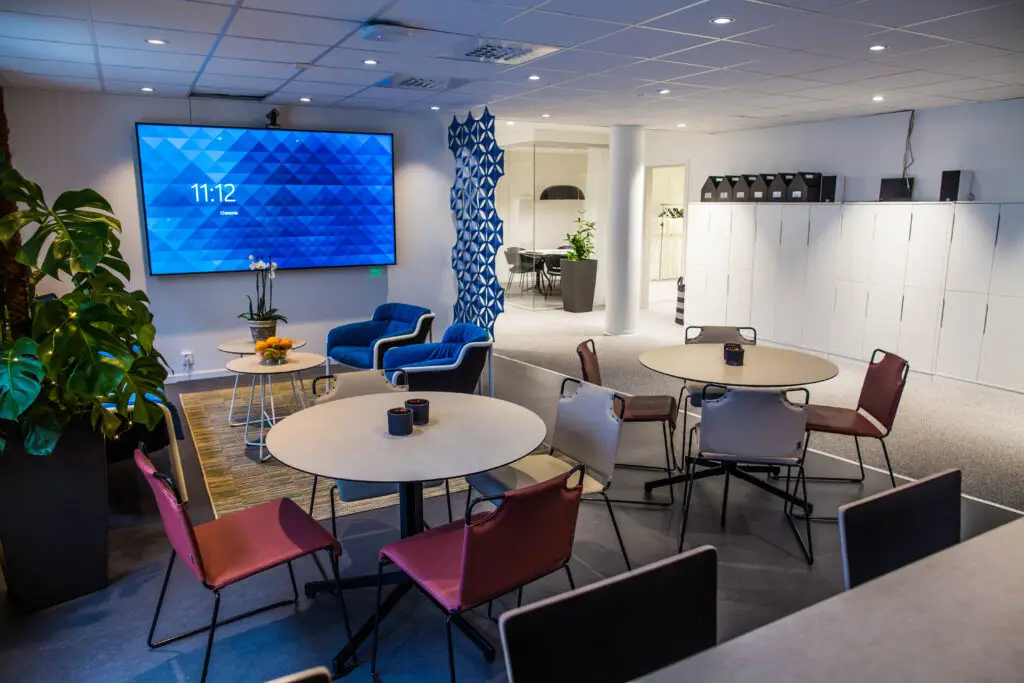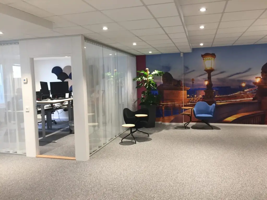 När Implema beslöt sig för att flytta till Klarabergsviadukten i centrala Stockholm, fick vi uppdraget att inreda ett varumärkesbyggande och aktivitetsbaserat kontor. I kundzonen/entrén bemöts kunder och medarbetare av en varm och välkomnande atmosfär i loungemiljö.Det nya kontoret består av tydligt och väl definierade zoner som även formas av möblemanget; kundzon, socialzon, lågmäldzon och tystzon.Kökszon Inredning och möblemang i denna zon bidrar till att både stormöten och afterwork kan hållas här medan miljön känns inspirerande och välkomnande. Här kan anställda även sitta och arbeta om de så önskar.Aktivitetsbaserade kontor har visat sig bidra med mer energi i form av spontana möten samt ökad aktivitet och återkoppling mot kund.Om Implema Implema är ett aktivitetsbaserat kontor där deras anställda skapar konkurrenskraftiga företag och effektiva affärsprocesser med hjälp av marknadens ledande affärsstödslösningar: SAP och Microsoft Dynamics AX. Vi tackar så mycket för förtroendet om att få inreda ert nya kontor, varumärkesbyggande och aktivitetsbaserat. I dag har Implema en personalstyrka på 50 anställda vid aktuell arbetsplats. Man förväntar ett tillskott på 15 nya medarbetare under de kommande tre åren.Ledord Värdeord som laganda, inspiration, kvalité och engagemang, med akronymen LIKE, har lagts fram som ledord att återspegla.Det var ett väldigt intressant och bra upplägg på hela omtaget att flytta från ett traditionellt kontor och att göra om verksamheten till ett aktivitetsbaserat kontor. I samarbete med Inredningsarkitekten Annette gjordes förstudier och en medarbetarundersökning för att få fram en bra och funktionell planlösning och ett hållbart inredningskoncept. Alla i vårt team är mycket nöjda med samarbetet och resultatet. Jörgen Aronsson VD, ImplemaKonferensrummen har phototapeter från olika företagsresor.Ljudabsorbenterl pryder kontoret överallt. Hela kontoret har en väldigt bra akustik.Personalskåp till alla anställda och naturliga mötesplatser i olika komfortabla sittmöbler för en bra ergonomi.Bilder från företagsresor som en trivsam snackis.Heltäckningsmatta för bra akustik och mysig miljö. Mötesrum med ett digitalt bokningssystem.Alla mötesrum har olika möbler och teman.