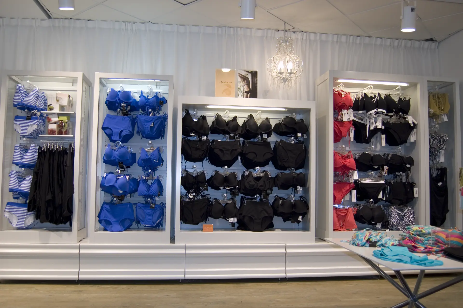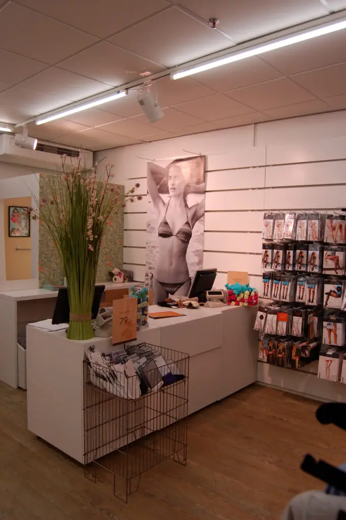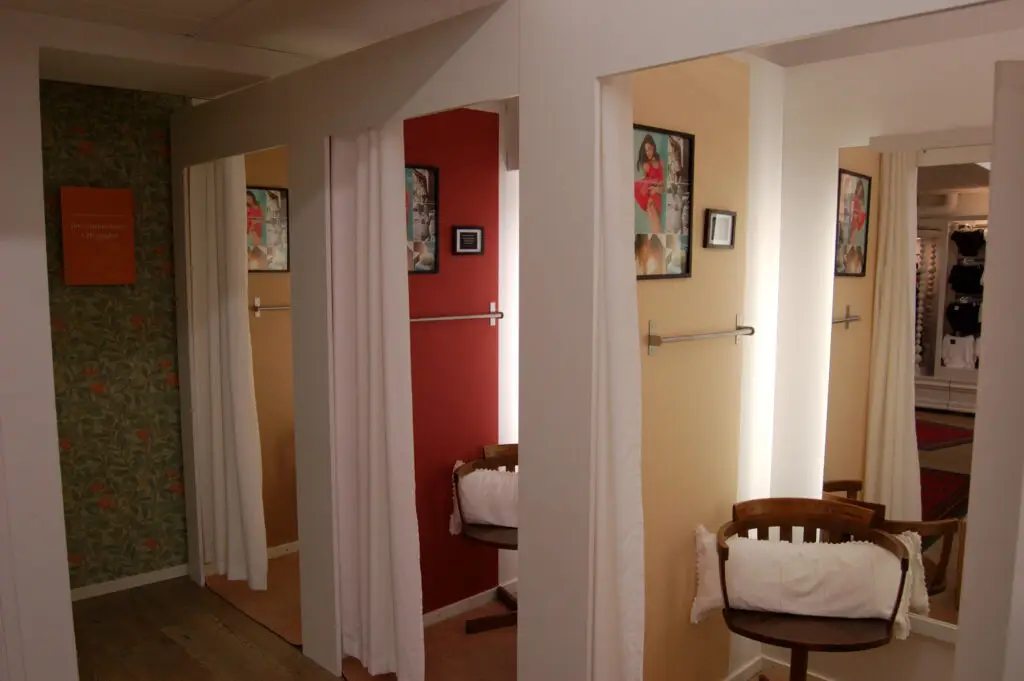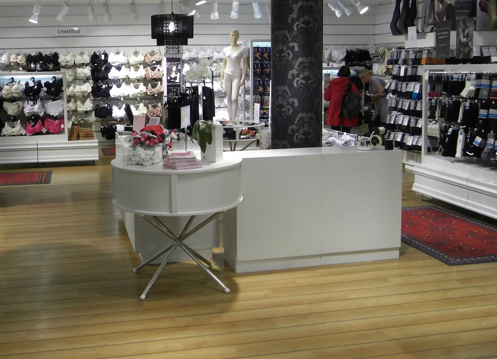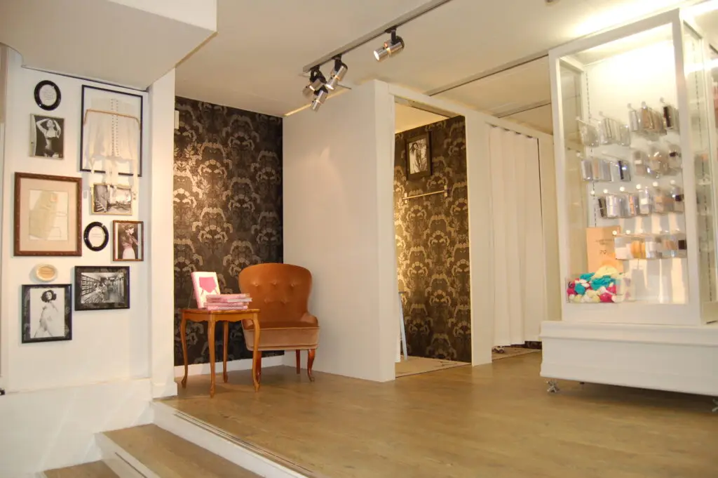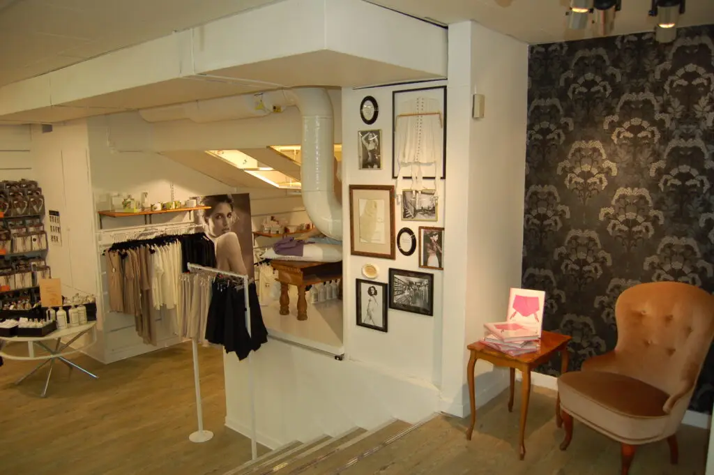 Vi ville göra ett mjukt kvinnligt koncept och lyfta fram historien med Twilfit, så de första underkläderna från Twilfit ramades in och sattes upp som tavlor tillsamman med ett beskrivande av historien också inramat på väggarna.